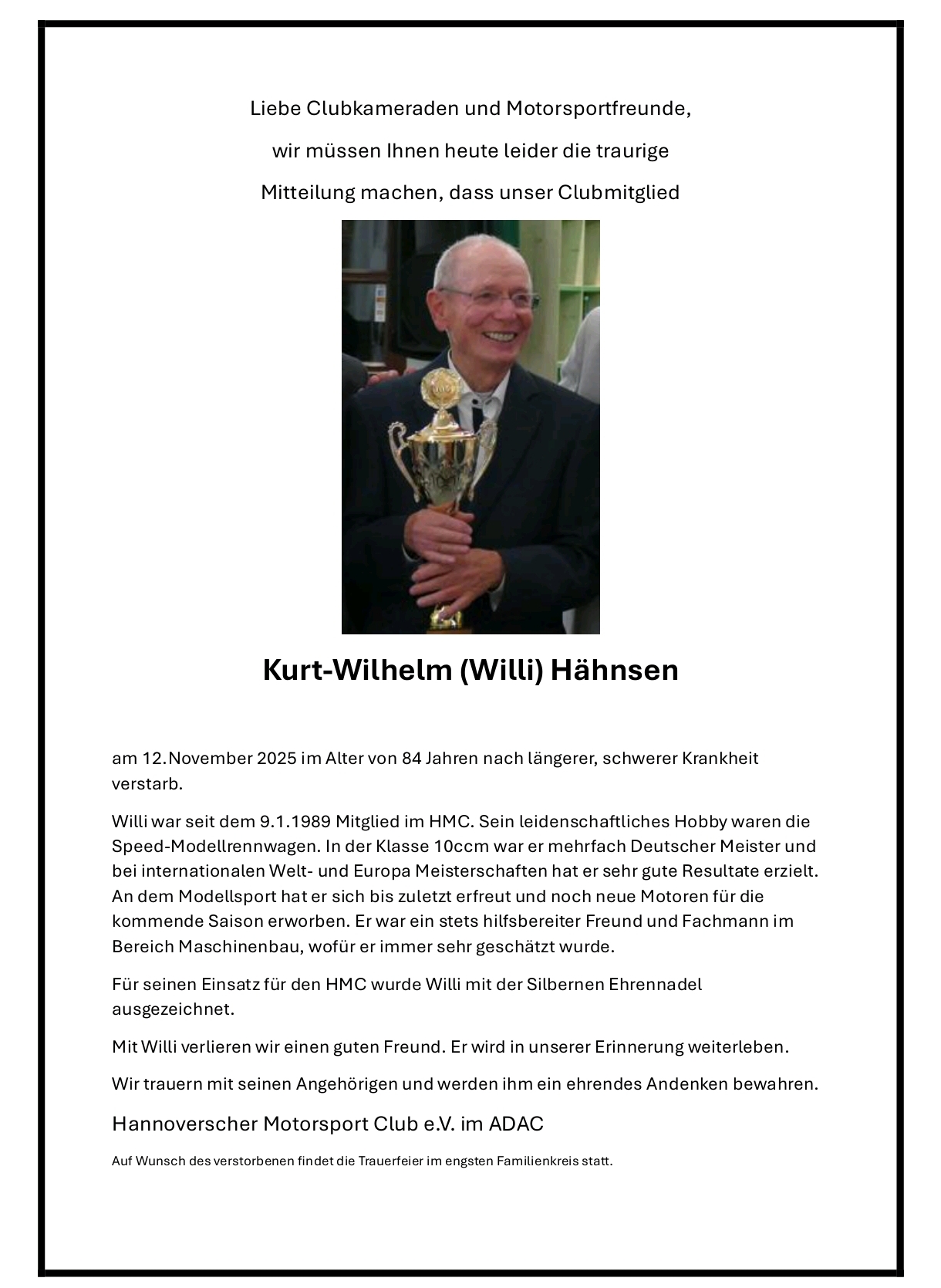 In Memoriam – Willi Hähnsen